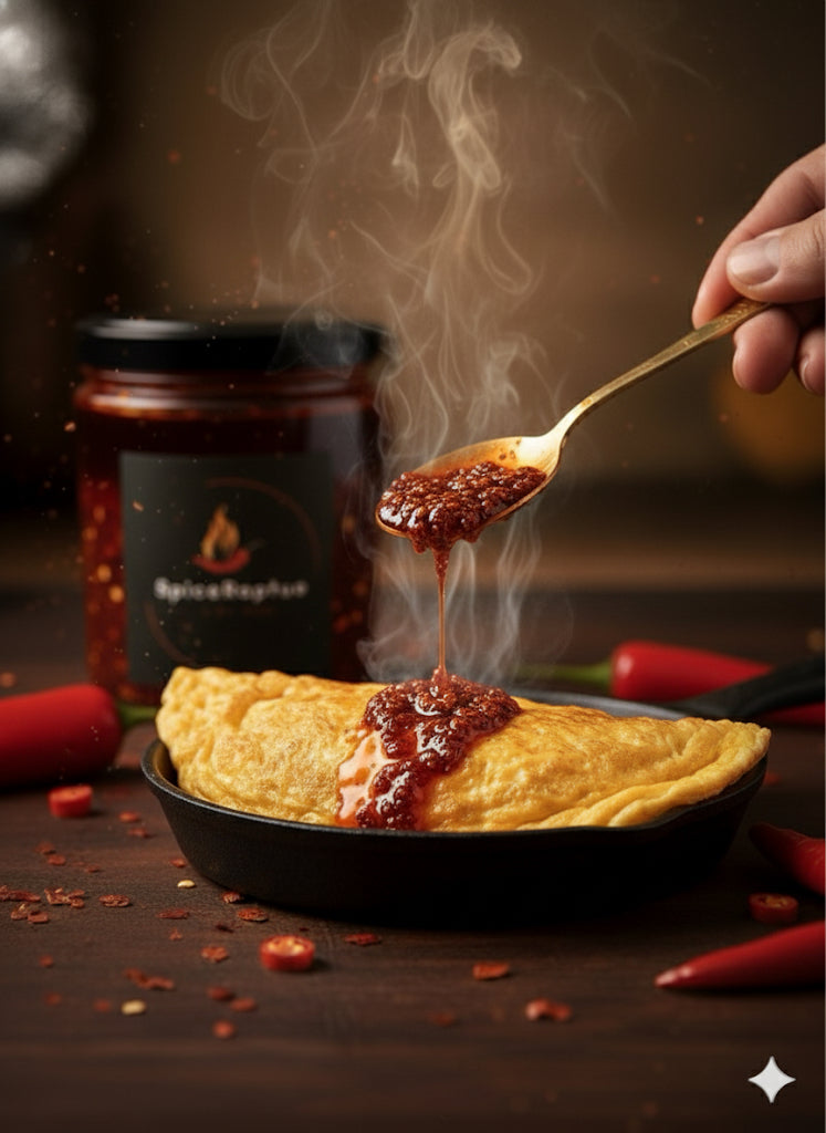 Experience the bold, aromatic essence of our Masala Chili Oil, a handcrafted fusion of spice and flavor. Made with Fresh Ginger, Garlic, Red Chili Peppers, and a balanced blend of Fragrant Spices, this golden oil delivers a deep, warming heat that enhances any dish. Whether drizzled over noodles, stirred into rice, or used as a dip or marinade, it transforms everyday meals into gourmet creations.